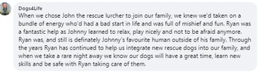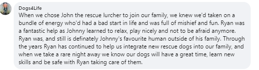 Ryan has helped us so much with tailored dog walks to manage excessive pulling, excitement and distractions.
